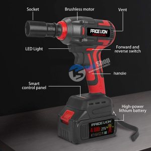 PRIDE LION Cordless 1/2″ Impact Wrench Brush less Motor 21v With Double Battery Packed 21V – 4.0Ah – PL903